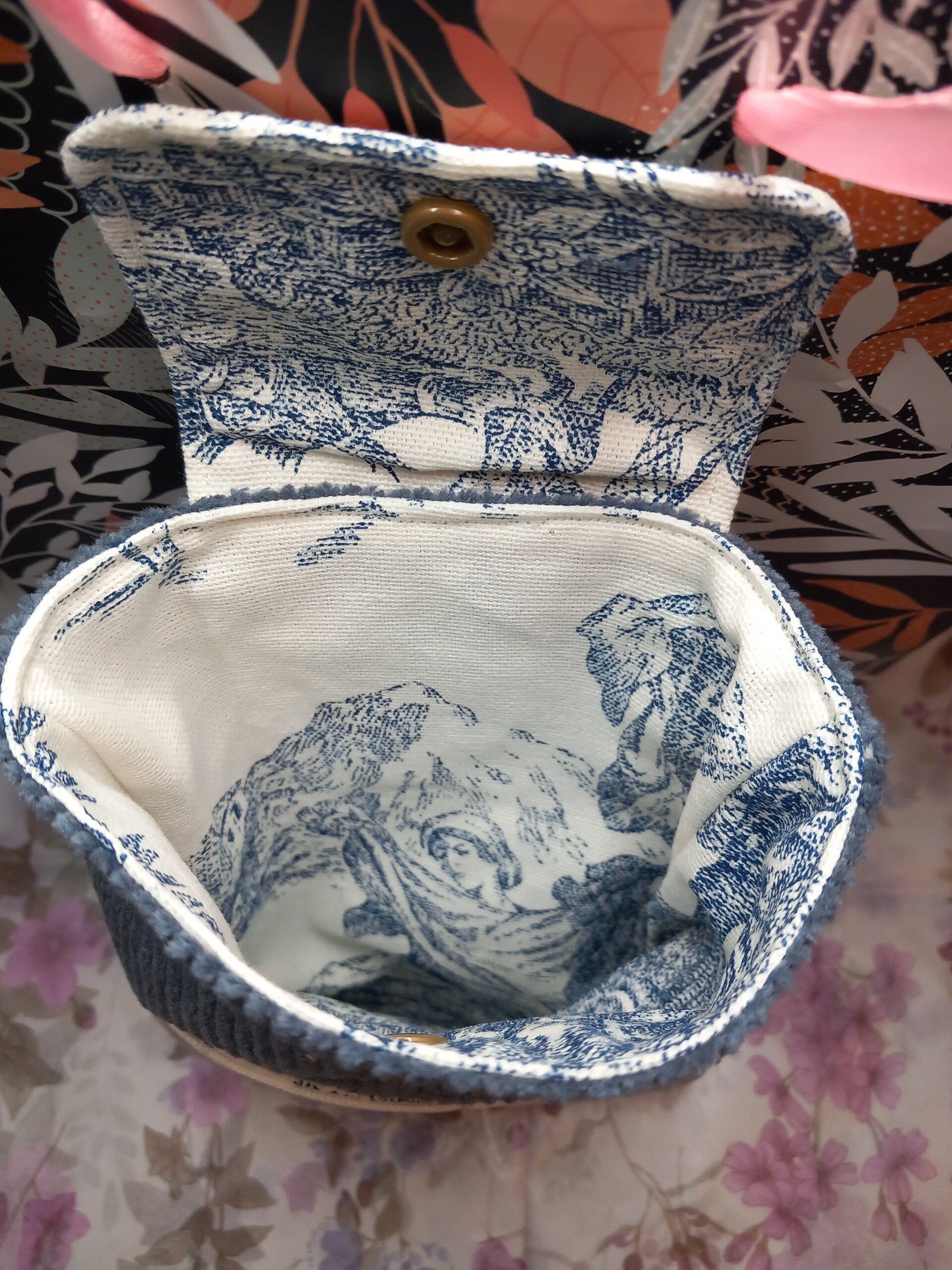 En tissus velours côtelé bleu pétrole et doublure jouy